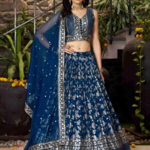 *BRIDAL WEAR HEAVY FUAX GEORGETTE EMBROIDERED SEQUENCE WORK LEHENGAS CHOLI WITH DUPATTA*
